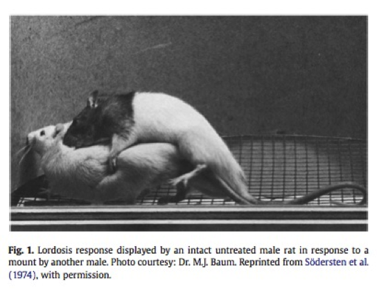 Our modern ideas of sexual differentiation of the brain go back to a key paper, published in 1959, by William C. Young and colleagues at the University of Kansas. This paper—cited hundreds of times since it was published—has reached canonical status in the world of behavioral endocrinology. What Young and colleagues showed was that if they administered testosterone prenatally to female guinea pigs they could permanently alter the behavioral repertoire of the animal as an adult. A female treated with testosterone would, when stimulated with testosterone as an adult, display more male-typical (mounting) behavior than a control animal. When stimulated by estrogen and progesterone as an adult, she would display less female-typical (back arching) behavior (called ‘lordosis’ in the jargon of behavioral endocrinology).